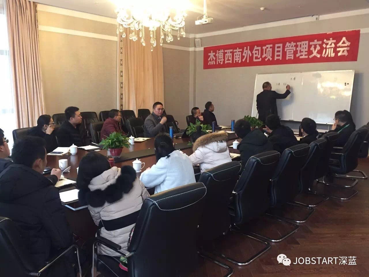 在第二天上午迎來了杰博人力資源西南區(qū)的項目管理部會議,會議由重慶分公司總經(jīng)理邱永軍主持,參與會議的有:重慶項目部、哈爾濱項目部、武漢項目部、涿州項目部等項目部,成都、重慶等西南區(qū)分公司全體業(yè)務(wù)人員,以及公司管理層代表王晶燁總一起參加了本次會議。
