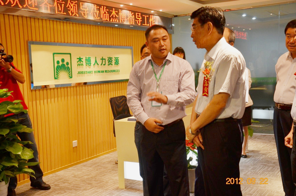 杰博寧波分公司總經(jīng)理王晶燁代表公司向各級(jí)領(lǐng)導(dǎo)匯報(bào)了杰博的經(jīng)營(yíng)理念和運(yùn)營(yíng)現(xiàn)狀。王曉初副部長(zhǎng)在聽(tīng)取王總匯報(bào)后,首先肯定了杰博在勞務(wù)派遣方面取得的成績(jī),并親切詢問(wèn)杰博未來(lái)幾年的發(fā)展規(guī)劃。最后,王曉初副部長(zhǎng)表示希望杰博繼續(xù)立足寧波、服務(wù)長(zhǎng)三角,做強(qiáng)做大、與園區(qū)共同發(fā)展,發(fā)揮集聚產(chǎn)業(yè)、拓展服務(wù)、培育市場(chǎng)、打造高地的四大功能,成為基礎(chǔ)人才服務(wù)和經(jīng)營(yíng)性人才服務(wù)齊頭并進(jìn)的人力資源綜合解決方案供應(yīng)商。
